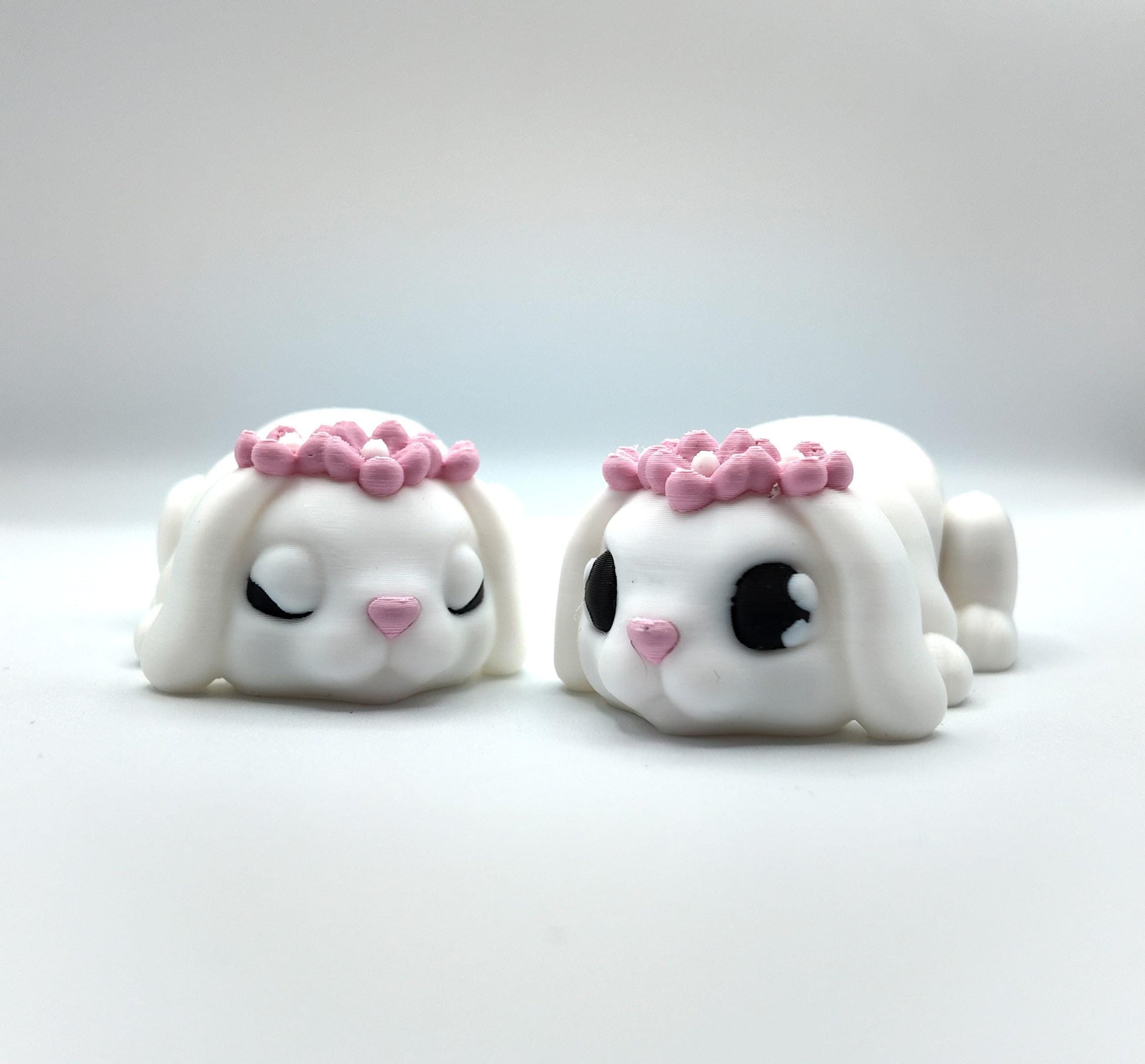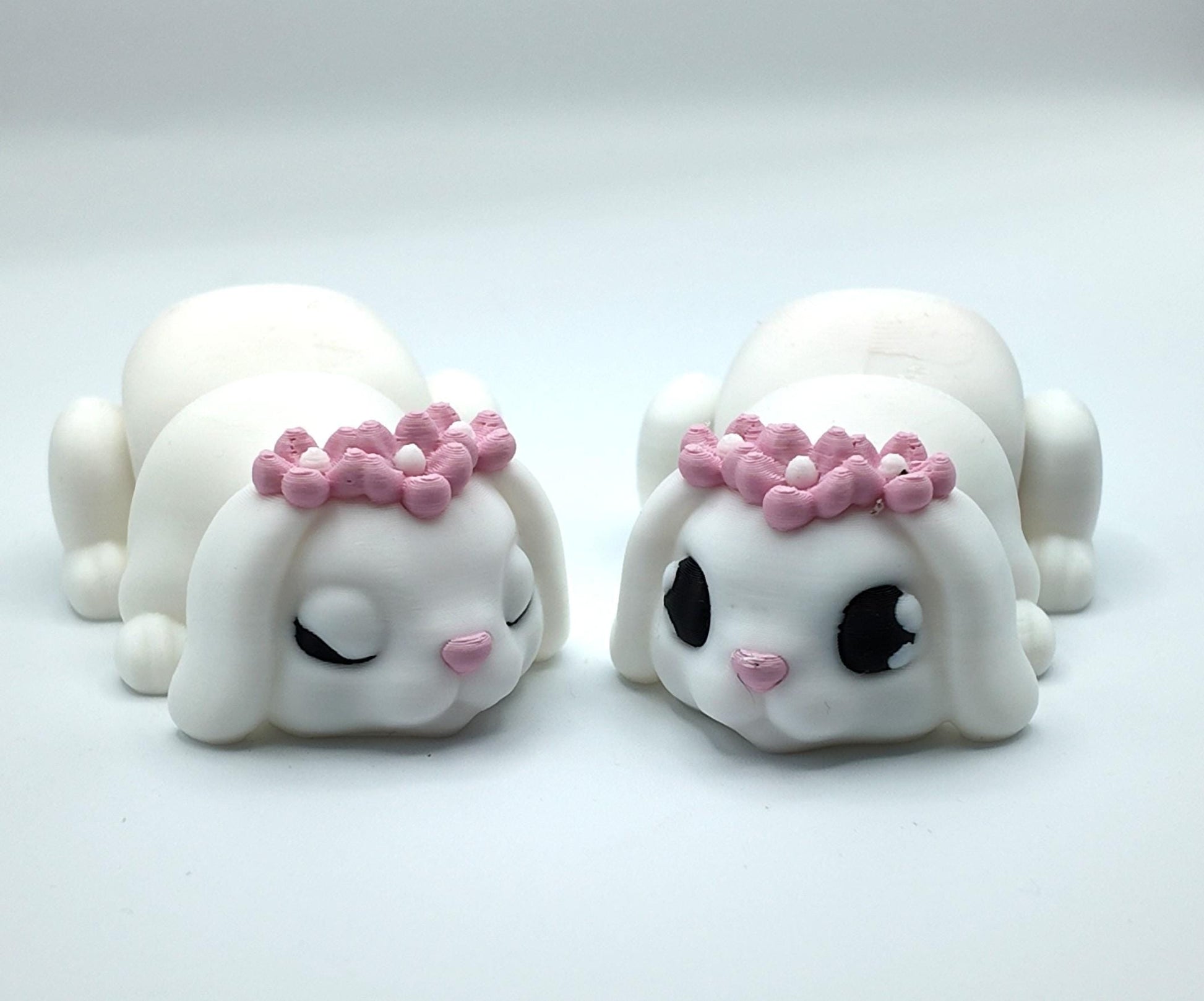 Bring some irresistible charm to your desk, shelf, or display with this adorable articulated flop-eared bunny! Available in two styles – Awake (bright-eyed and curious) or Asleep (peacefully snoozing) – each bunny is finished with a sweet flower crown on its head, adding the perfect touch of springtime magic.