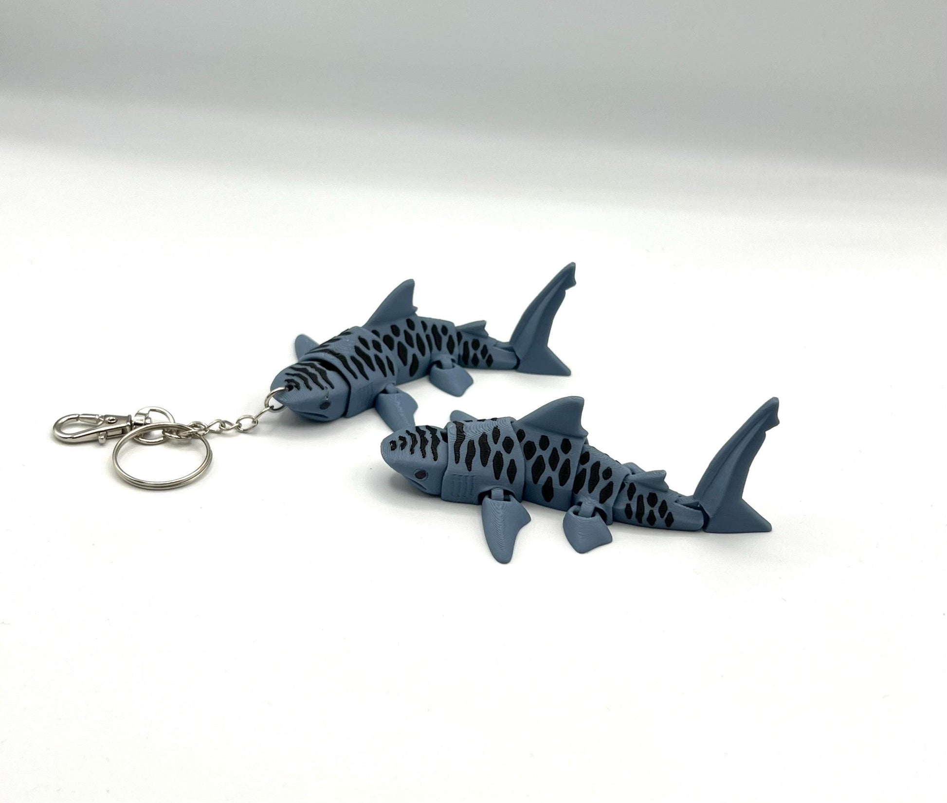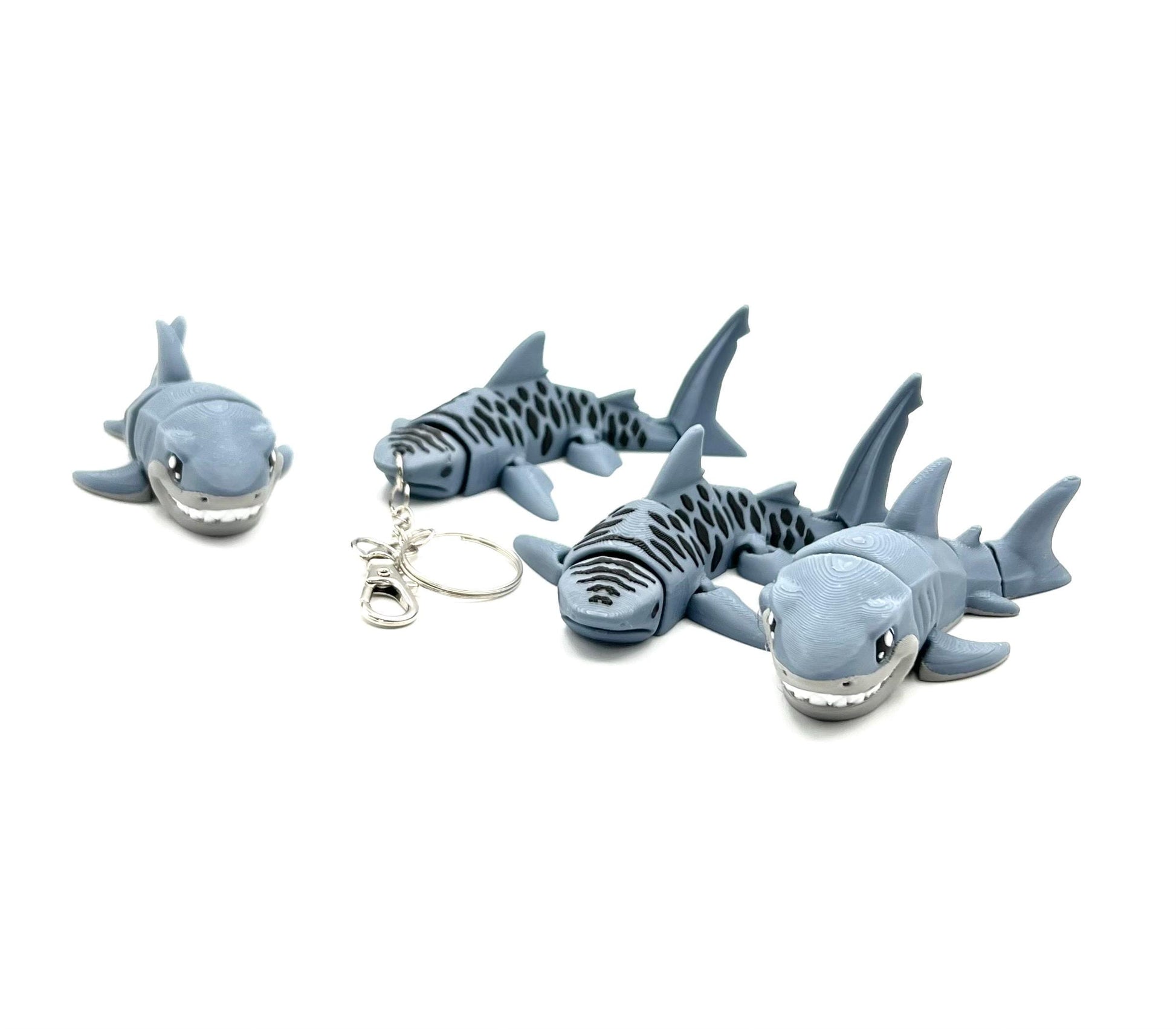 3D Printed Shark Fidget Toy β choose Great White or Tiger Shark β Articulated Desk Toy β Keychain Option β Sensory Gift for Shark Lovers