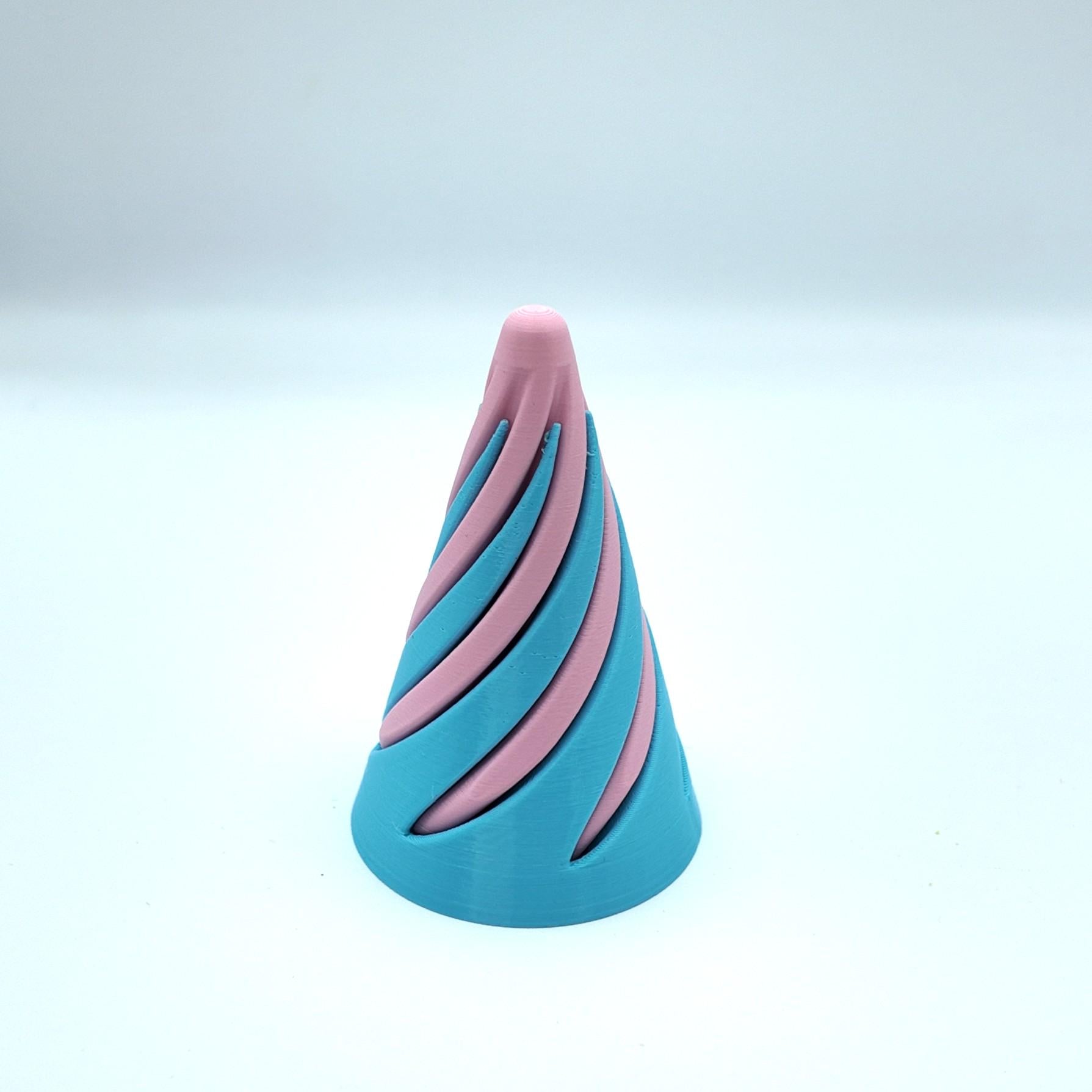 Discover the satisfying spin of this unique fidget cone toy, a fun and tactile 3D printed item designed to twist and twirl with ease! Made from eco-friendly PLA filament and available in a wide variety of vibrant colours, this fidget toy is both hypnotic and calming, perfect for relieving stress or keeping hands busy. Great for both kids (ages 6+) and adults alike.