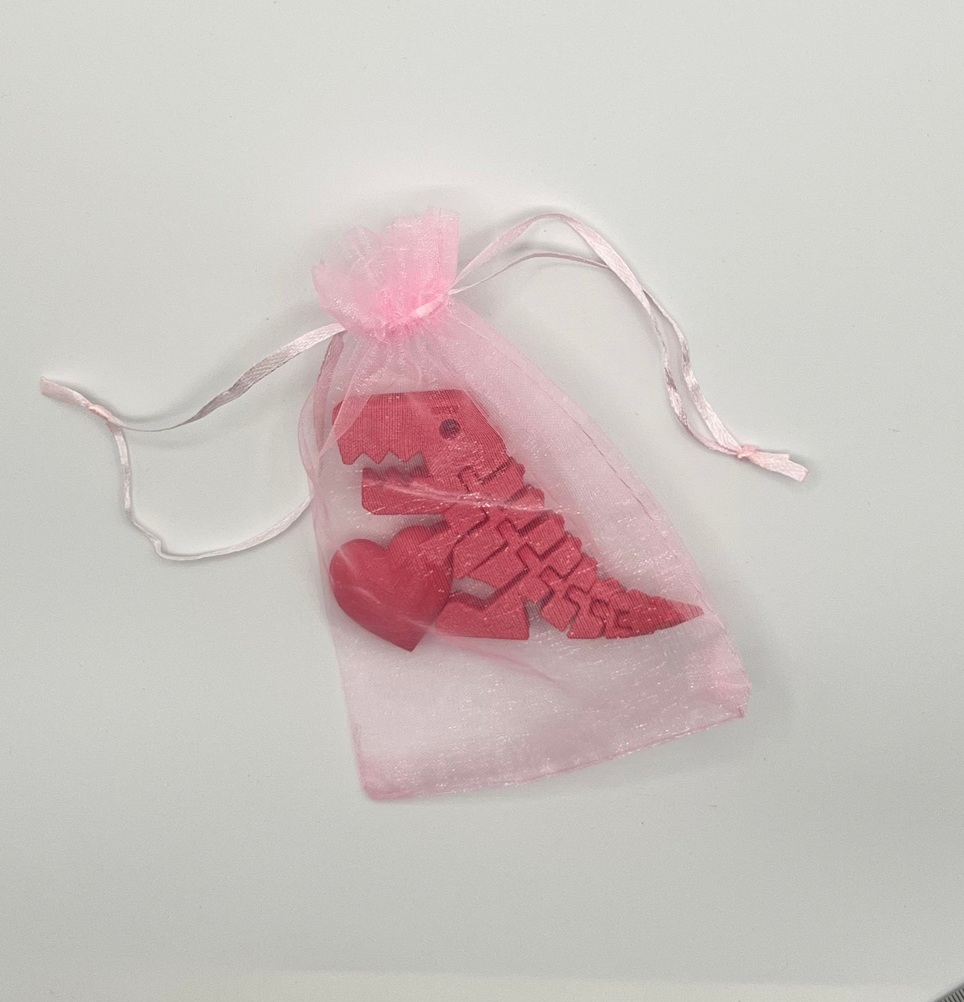 Introducing our Valentine edition of the 3D printed Flexi Rex dinosaur fidget toy, a unique and captivating toy that is sure to delight both kids and adults.