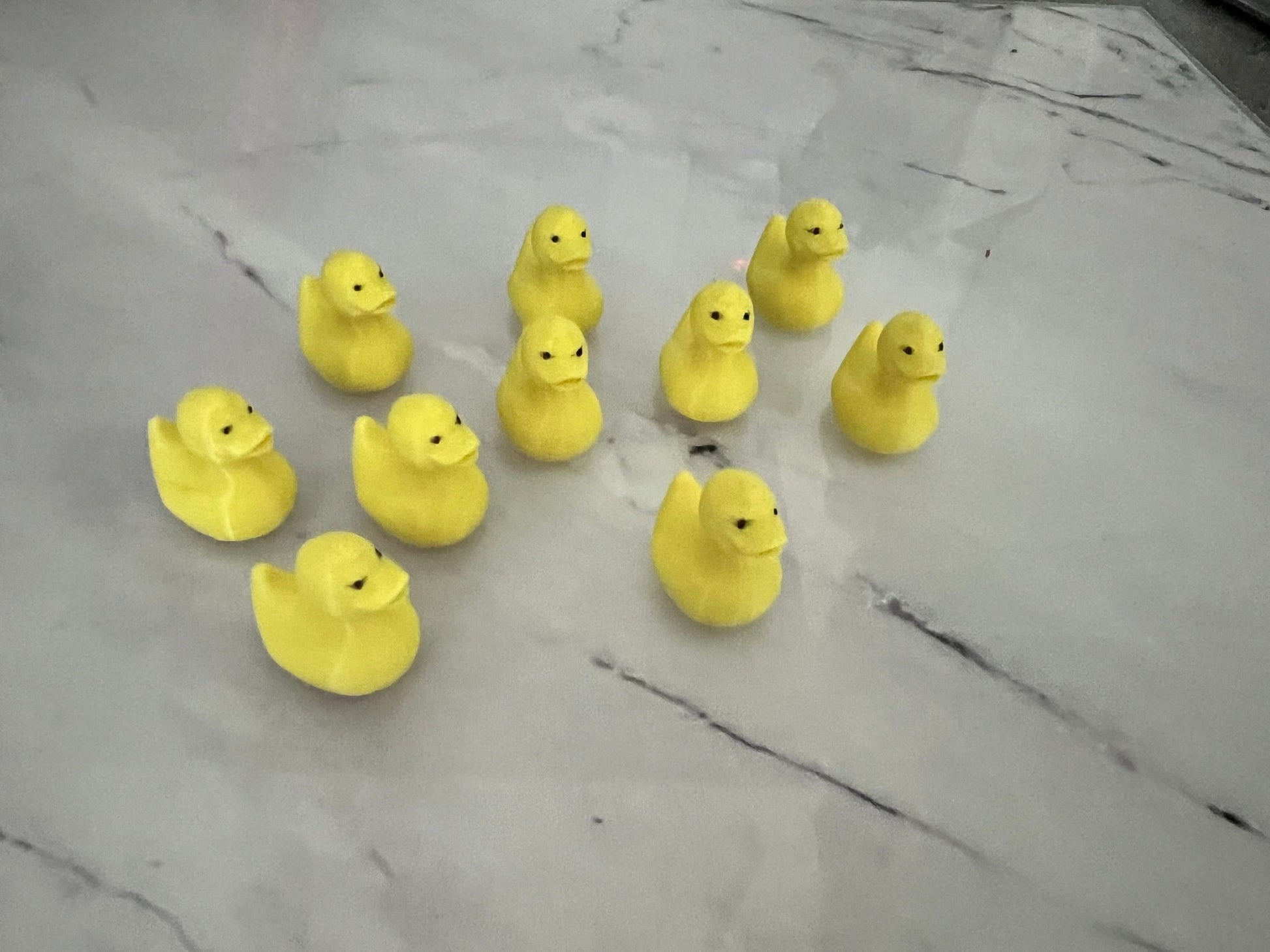 Get ready for a splash of adventure with our pack of 3D printed miniature rubber ducks!