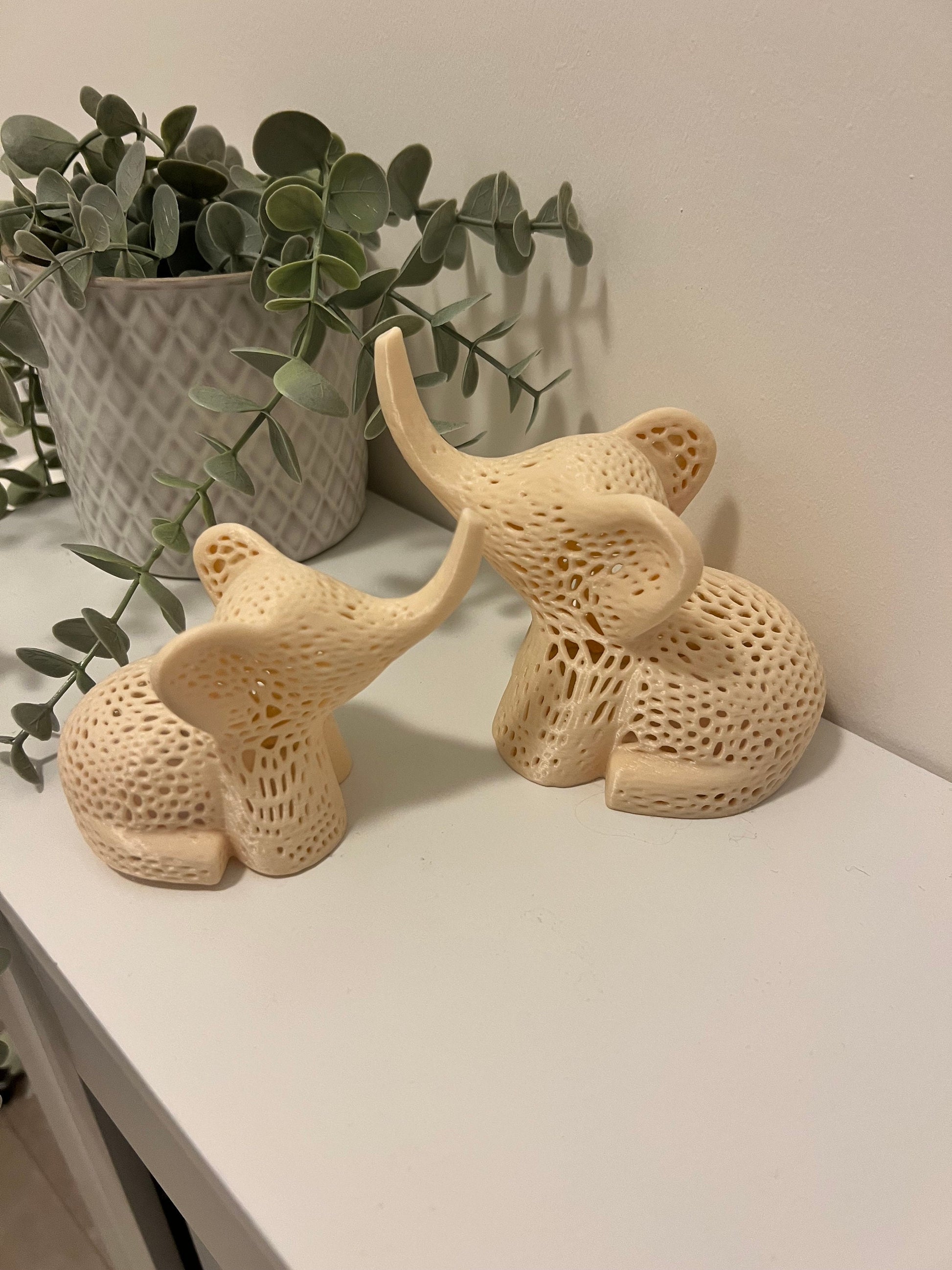 Illuminate your space with a touch of whimsy and elegance using this set of 2 stunning 3D Printed Elephant Tea Light Covers. This enchanting pair features a parent and child elephant, creating a heartwarming ambiance wherever they are placed.