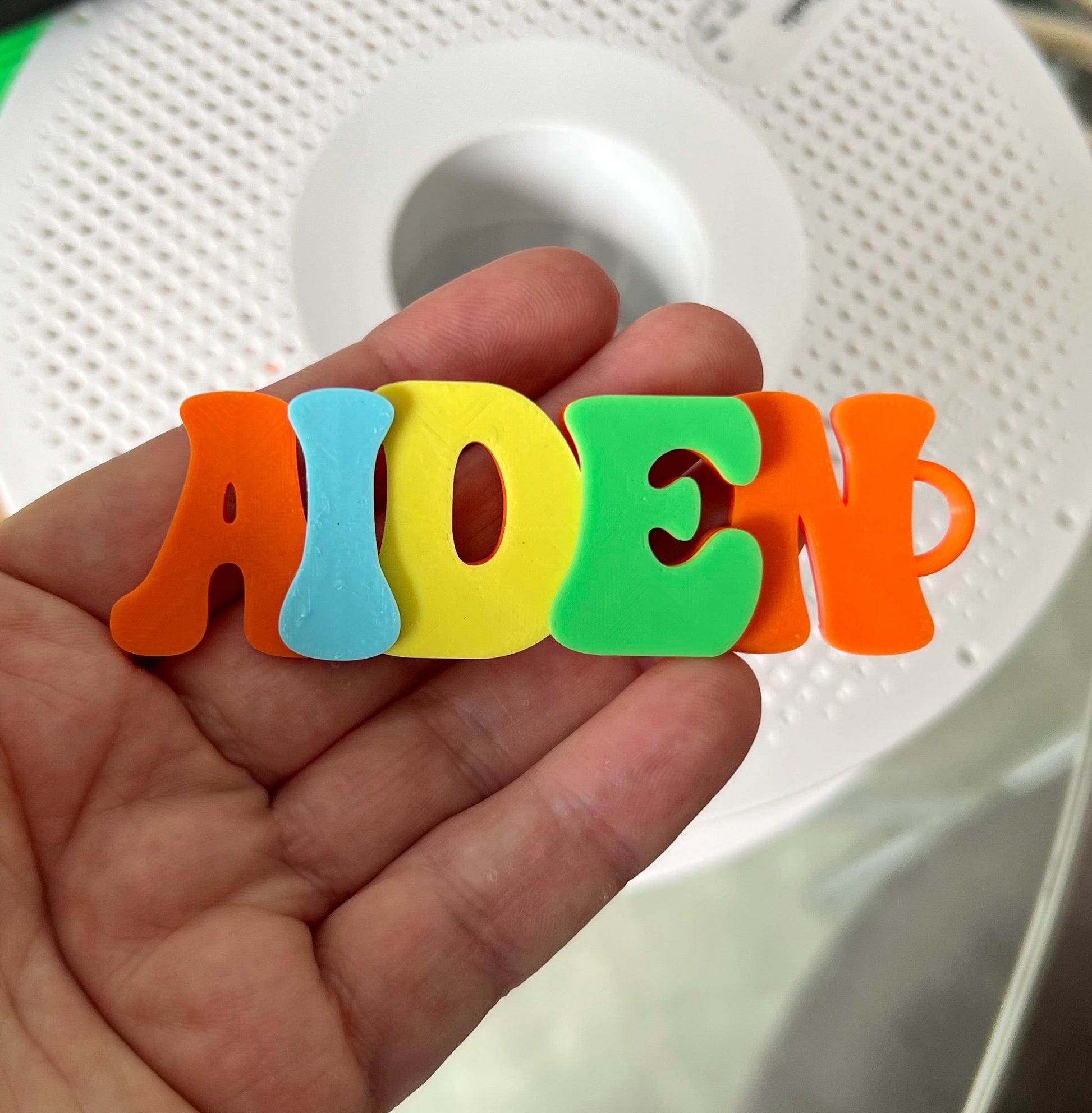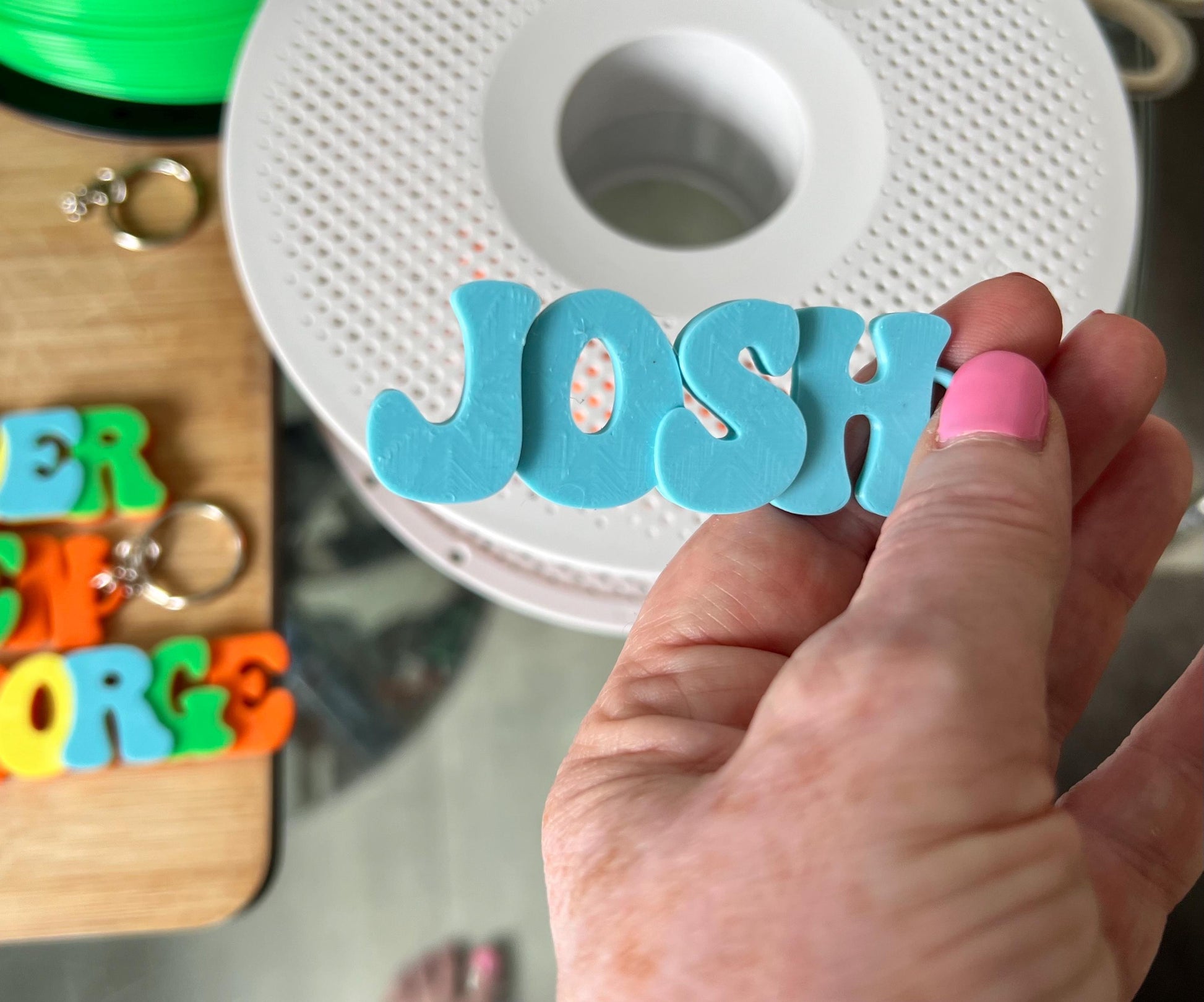 Add a personal touch to your keys, backpack, or gift bag with this fun and vibrant 3D printed name keychain!